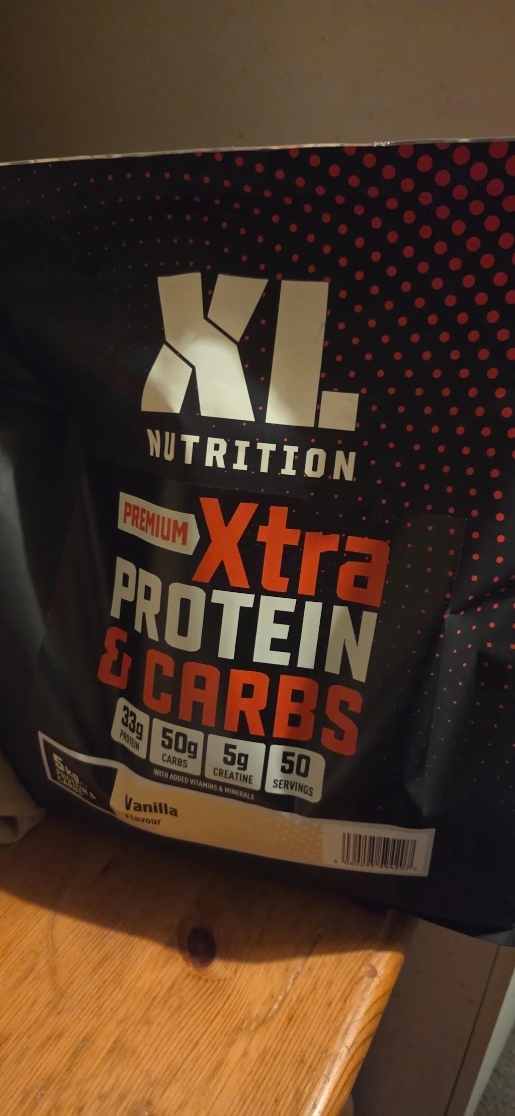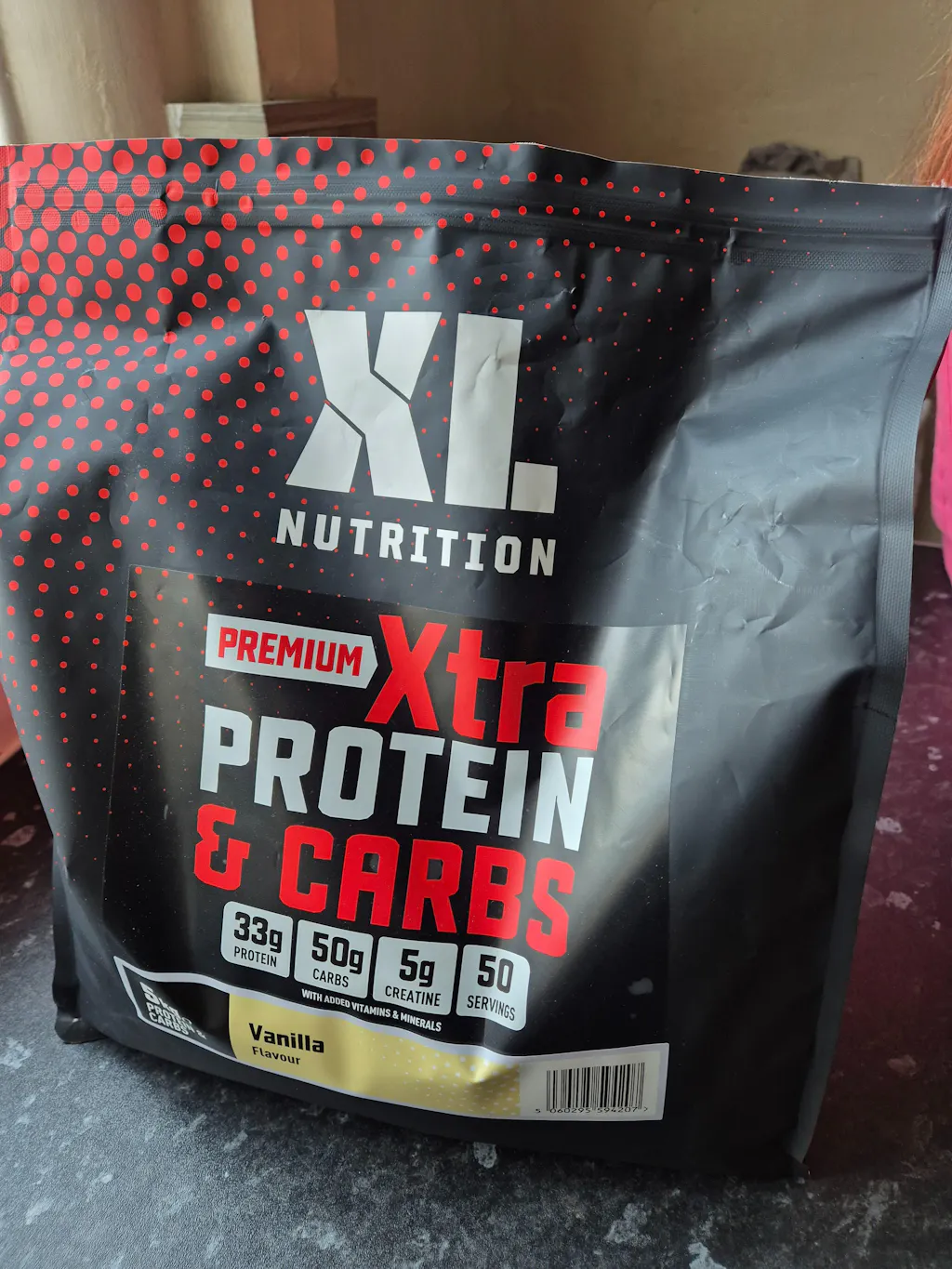 XL Nutrition XTRA Protein and Carbs is a moderate-calorie mass gainer delivering 386 calories per 100g serving with 33g of protein, 50g of carbohydrates and 5.2g of fat. The 5kg tub provides 50 servings across 3 flavour options, making it one of the longest-lasting products in the mass gainer category.